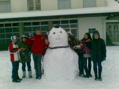 Partager cette page Une surprise attendait les collègiens au retour des vacances de Noël: 20 cm de neige immaculée dans la cour de l’établissement. Impossible de résister à la création d’un bonhomme de neige!!,