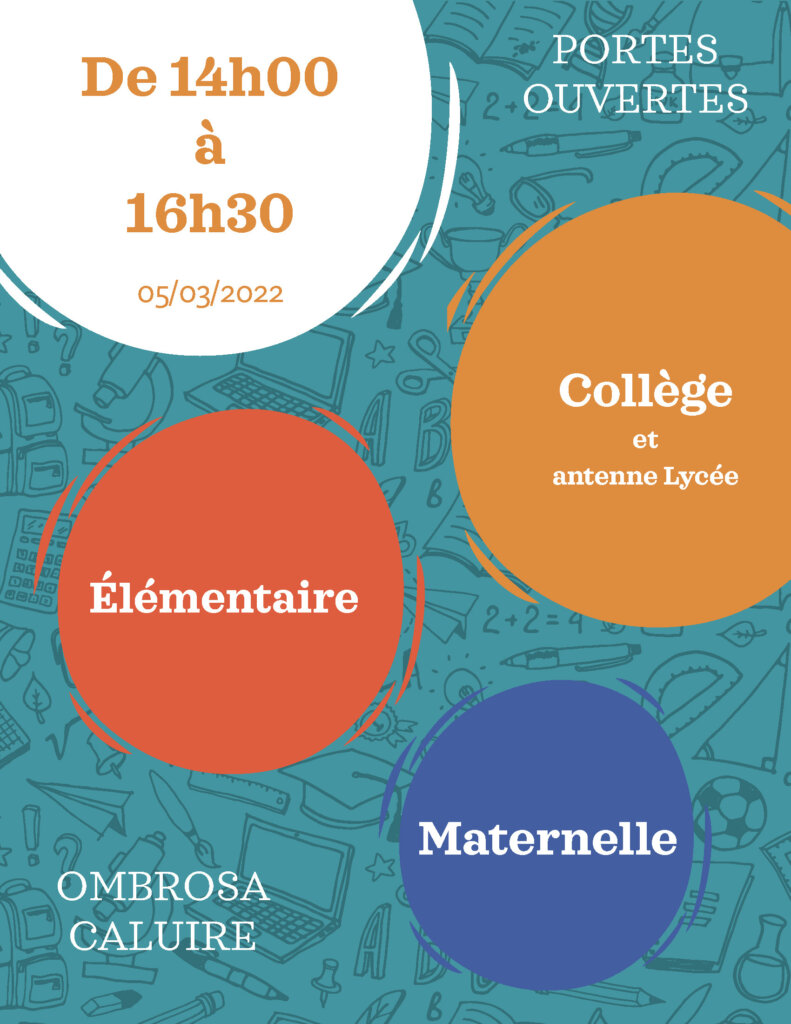 Nous vous invitons à découvrir OMBROSA (maternelle, élémentaire, collège) lors des portes ouvertes le samedi 05 mars 2022, de 14h00 à 16h30.