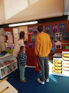 Beaucoup d’enfants étaient contents et fiers de montrer leurs créations artistiques à leurs parents.