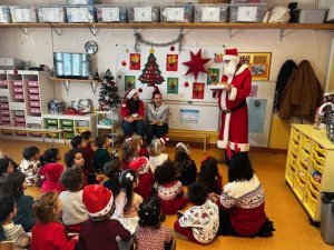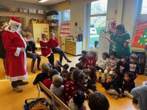 Les tout-petits lui ont chanté quelques chansons, et le Père Noël n’est pas venu les mains vides : clémentines et papillotes ont été distribuées, en attendant les cadeaux le moment venu.