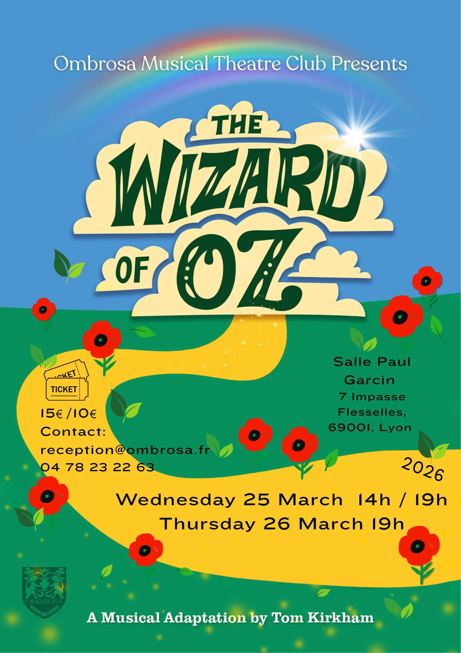 Le club de comédie musicale d’Ombrosa est fier de présenter Le Magicien d’Oz, une aventure musicale suivant Dorothy, une jeune fille emportée par une tornade dans le merveilleux pays d’Oz. Le long du chemin de briques jaunes, elle rencontre un épouvantail en quête d’un cerveau, un homme de fer blanc aspirant à un cœur, et un lion espérant trouver du courage. Ensemble, ils voyagent vers la Cité Émeraude pour demander de l’aide au mystérieux Magicien, découvrant en chemin que ce qu’ils cherchent pourrait avoir toujours été en eux.