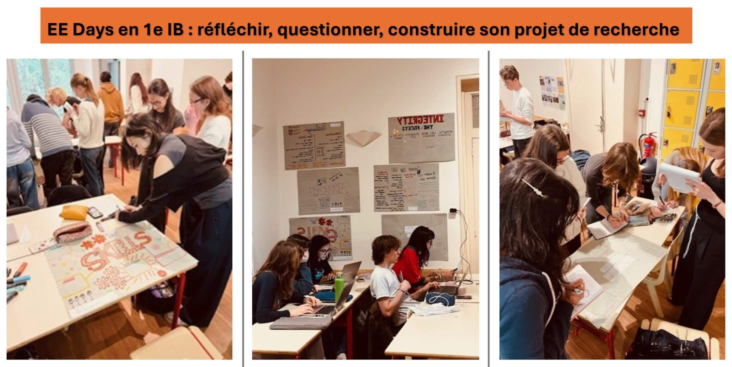 Juste avant les vacances de printemps, les élèves de DP1 IB ont participé à deux mini EE Days (journées consacrées au mémoire). Ces journées ont été l’occasion d’approfondir leur compréhension des outils de recherche et des normes de référencement. Des séances consacrées à l’orientation pour les candidatures universitaires ainsi qu’à la réflexion autour du CAS ont également été proposées.